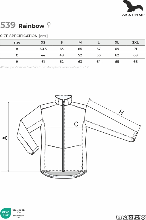Damska kurtka Rainbow 539 to lekki, wodoodporny model o gramaturze 105 g/m², wyposażony w membranę TPU oraz zaawansowane wykończenie hydrofobowe BIONIC FINISH® ECO. Charakteryzuje się taliowanym krojem, klejonymi szwami oraz parametrami wodoodporności 5 000 mm i oddychalności 3 000 g/m²/24 godz. Kurtka posiada odpinany kaptur, regulowane rękawy na rzepy, wentylację w tylnej części oraz elementy odblaskowe. Praktyczny dostęp do brandingu z boku ułatwia personalizację metodą haftu, sublimacji lub nadruku, czyniąc ją stylowym i funkcjonalnym wyborem na zmienne warunki pogodowe.