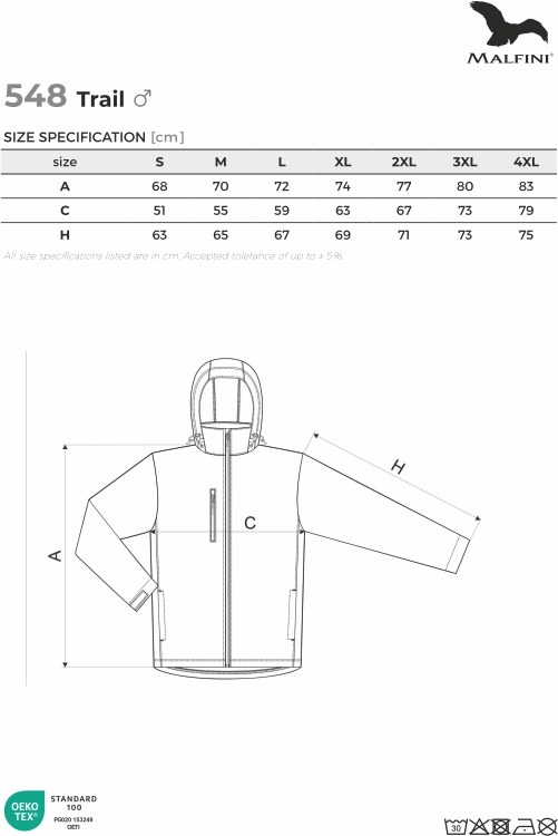 Męska kurtka softshell Trail 548 to 2-warstwowy model o gramaturze 280 g/m², wykonany z elastycznej tkaniny 4-Way Stretch z wodoodpornym wykończeniem. Wnętrze wyłożone mikopolarem z powłoką antypillingową zapewnia komfort cieplny, a prosty krój z przedłużonym tyłem i regulacją rękawów na rzepy gwarantuje doskonałe dopasowanie. Kurtka posiada elastyczny kaptur, praktyczną kieszeń na piersi oraz system "label free" z neutralną metką rozmiarową, co w połączeniu z możliwością sublimacji i haftu czyni ją idealnym produktem pod własną markę lub personalizację.