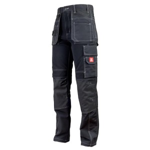 Mocne czarne spodnie robocze URGENT softshell z dodatkowymi podwójnymi kieszeniami wzór 712