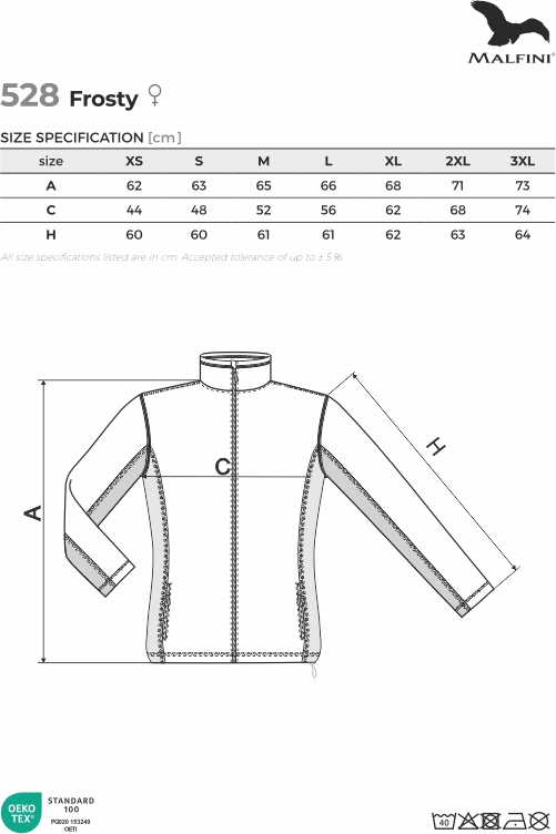 Damski polar Frosty 528 o gramaturze 220 g/m² to lekko taliowany model wykonany z izolującego materiału 100% poliester z zewnętrznym wykończeniem antypillingowym, które zapobiega mechaceniu. Wyposażony w zamek błyskawiczny z ochroną podbródka, kieszenie zapinane na zamek spiralny oraz dolny brzeg regulowany elastycznym ściągaczem. Kontrastowa taśma wewnątrz lamówki oraz ozdobne szwy nadają mu nowoczesny wygląd, a tkana metka i struktura materiału sprawiają, że jest to doskonały produkt pod haft lub grawerowanie.