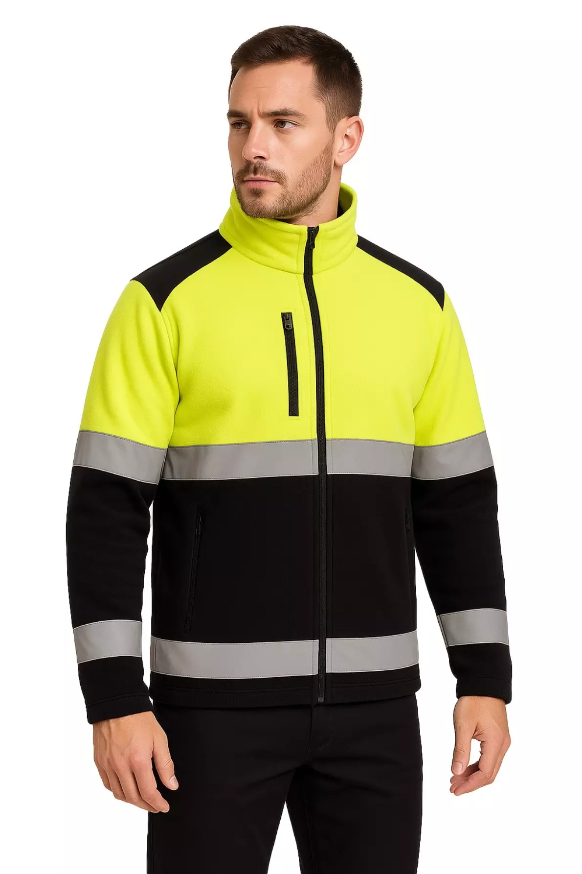 Polar ostrzegawczy dwukolorowy NEOPLUS FLHV450 (HI VISION) to gruby, ciepły polar (340–360 g/m², 100% poliester) z taśmami odblaskowymi dla lepszej widoczności. Ma długi zamek, 2 kieszenie boczne na suwak oraz kieszeń na prawej piersi, a dół regulowany jest sznurkiem ze stoperami. Wzmocnione, wodoodporne ramiona zwiększają trwałość – idealny do pracy i pod znakowanie (lewa/prawa pierś).