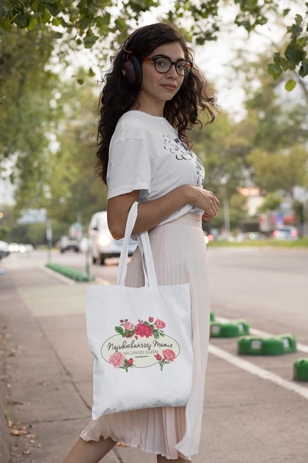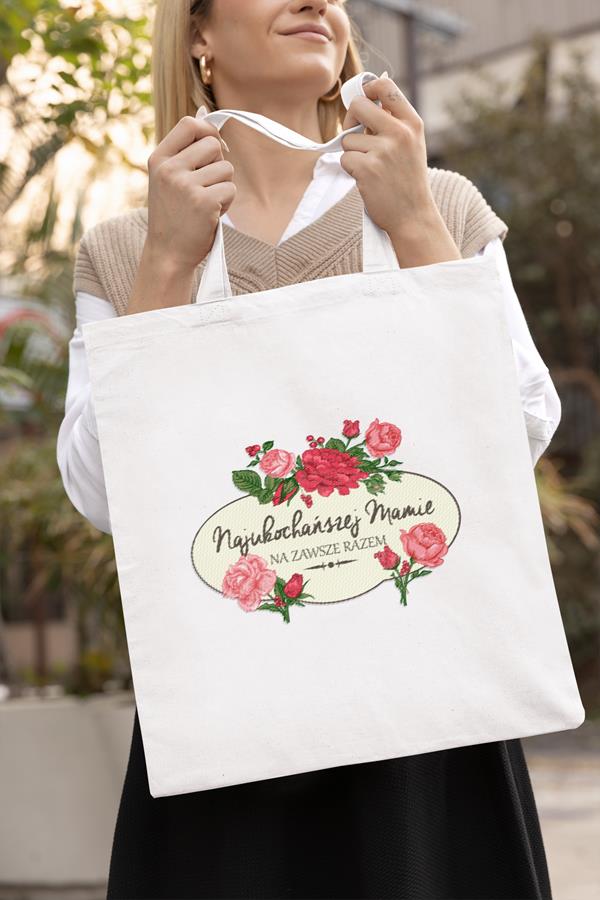 TORBA DLA MAMY NA PREZENT NA DZIEŃ MATKI Z NAPISEM NAJUKOCHAŃSZEJ MAMIE NA ZAWSZE RAZEM
