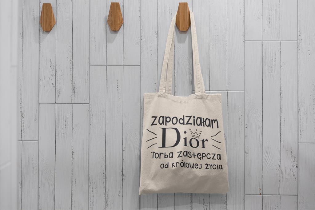 Z napisem ZAPODZIAŁAM DIOR TORBA ZASTĘPCZA OD KRÓLOWEJ ŻYCIA