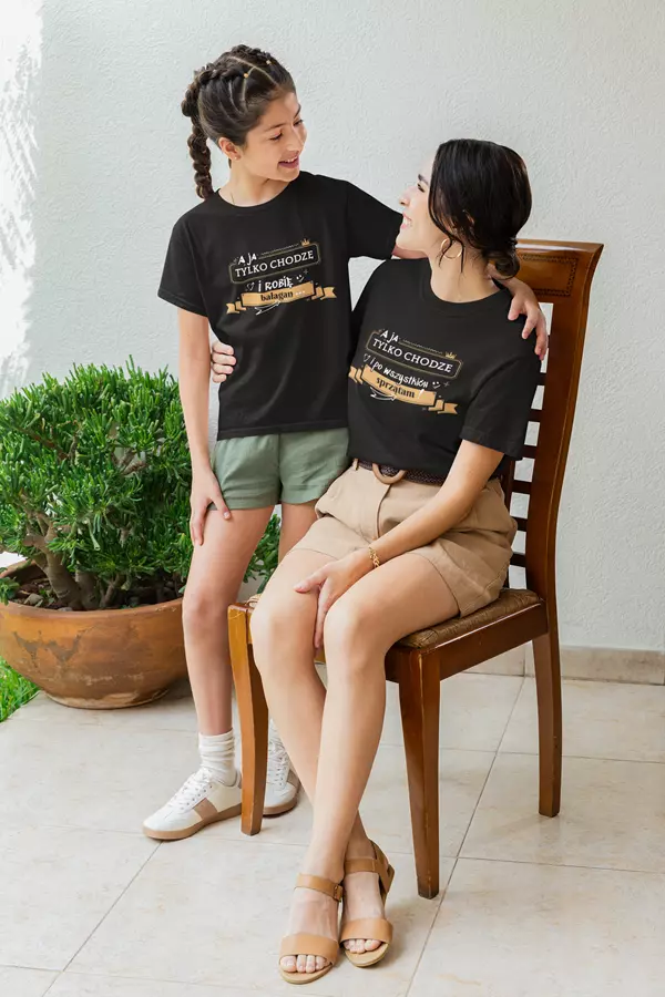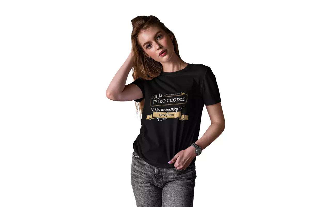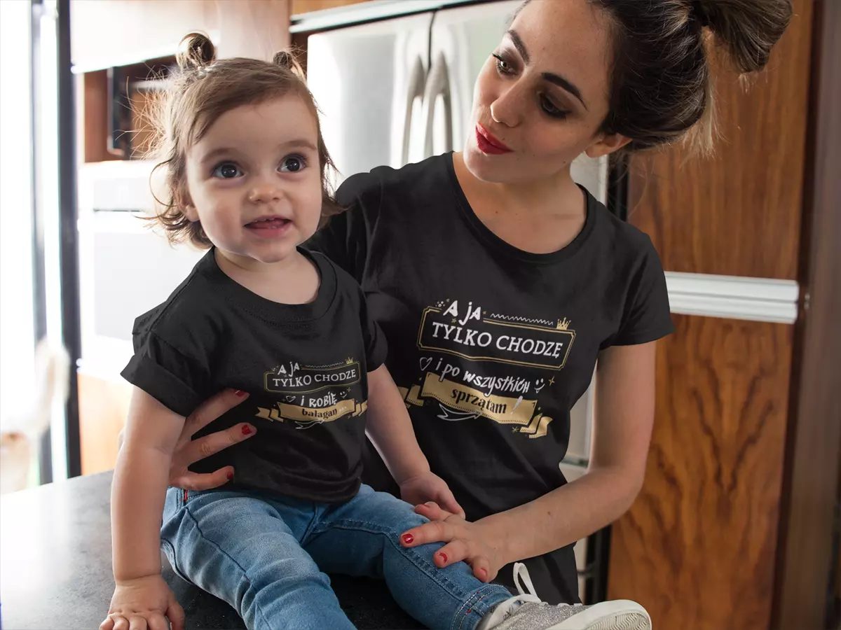 Koszulka z napisem: "A ja tylko chodzę i po wszystkich sprzątam" ORAZ "A ja tylko chodzę i robię bałagan".