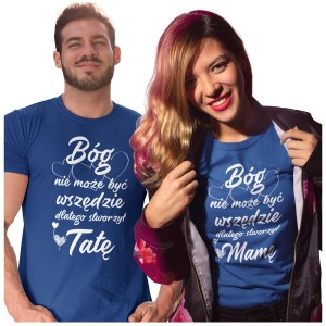 Zestaw koszulek dla rodziców na prezent koszulka dla mamy i taty Bóg nie może być wszędzie dlatego stworzył Tatę Bóg nie może być wszędzie dlatego stworzył Mamę kolor granatowy