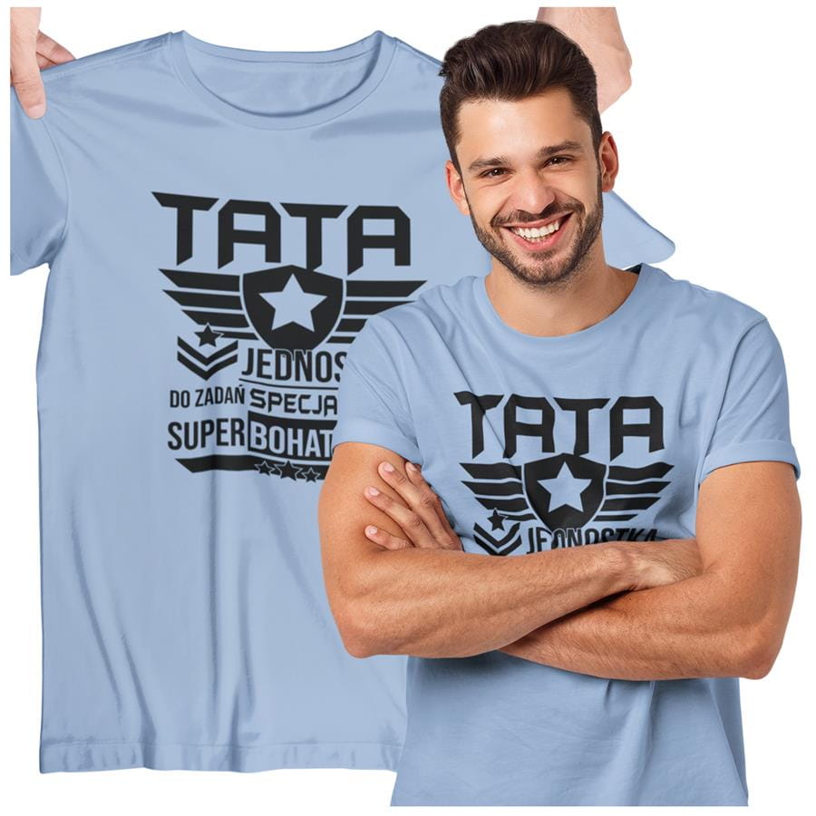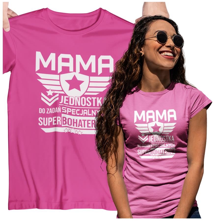 Zestaw koszulek dla rodziców na prezent koszulka dla mamy i taty MAMA JEDNOSTKA DO ZADAŃ SECJALNYCH SUPERBOHATERÓW TATA JEDNOSTKA DO ZADAŃ SECJALNYCH SUPERBOHATERÓW kolor błękitny/róż