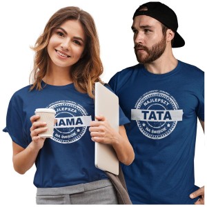 Zestaw koszulek dla rodziców na prezent koszulka dla mamy i taty wspaniały, inteligentny, zabawny, opiekuńczy NAJLEPSZY TATA NA ŚWIECIE wspaniała, inteligentna, zabawna, opiekuńcza NAJLEPSZA MAMA NA ŚWIECIE kolor granatowy