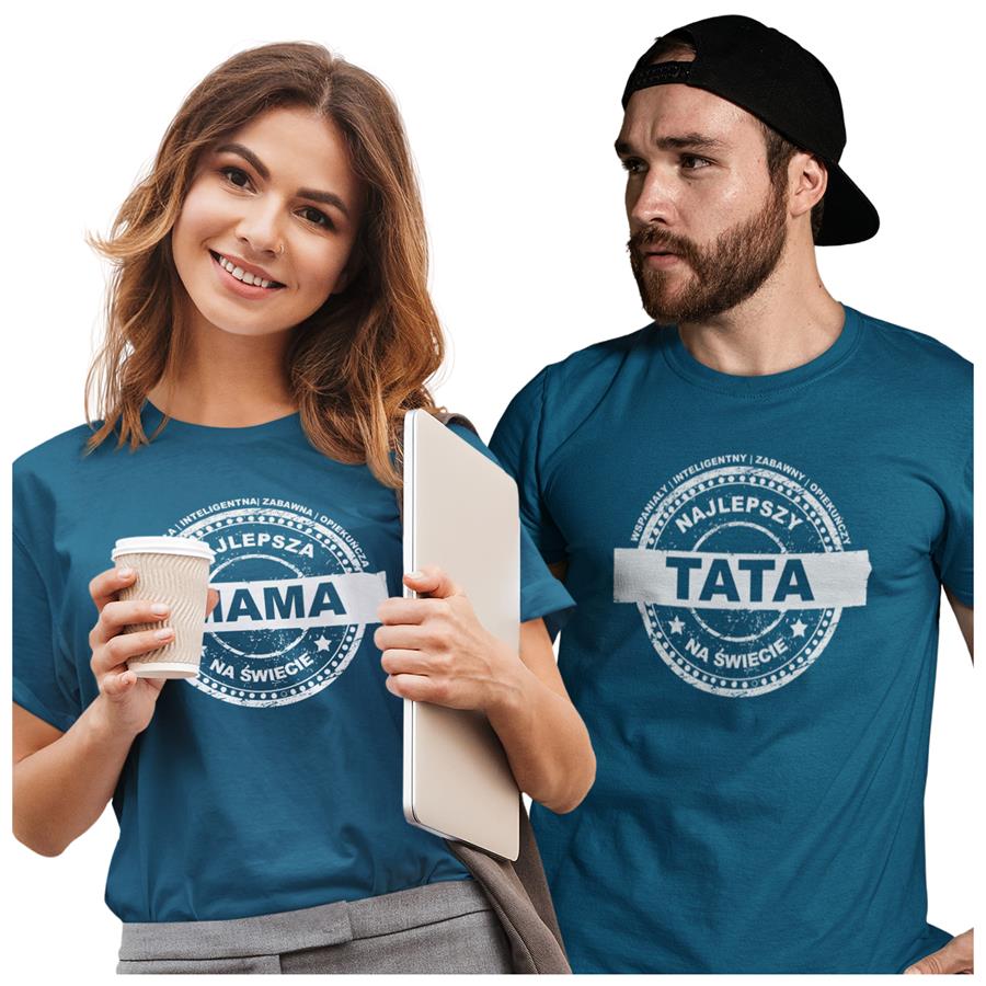 Zestaw koszulek dla rodziców na prezent koszulka dla mamy i taty wspaniały, inteligentny, zabawny, opiekuńczy NAJLEPSZY TATA NA ŚWIECIE wspaniała, inteligentna, zabawna, opiekuńcza NAJLEPSZA MAMA NA ŚWIECIE kolor petrol blue